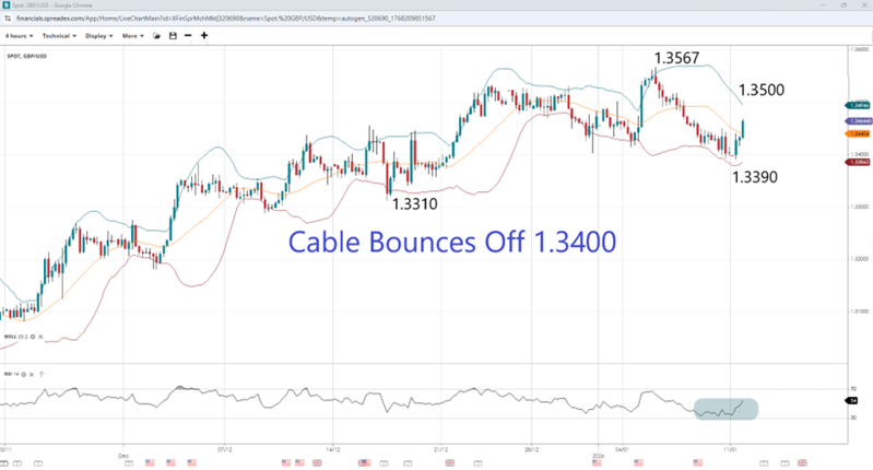 Despite the cable popping higher last Monday, it trended lower for the rest of the week amid dollar strength. The greenback was bolstered as investors remained cautious amid geopolitical developments, including the situation in Venezuela and the lack of progress toward ending the war in Ukraine. Treasury yields also rose after the first Fed speaker of the new year offered his view on policy. FOMC voter Tom Barkin said he expected the economy to accelerate this year, which would make it less likely that the Fed will ease policy, with the odds of a March cut falling to 28% from 50% earlier in the week. The next major data point that could influence the Fed's outlook is Tuesday's release of the December CPI, with analyst consensus that the core inflation rate will increase to 2.7% from 2.6% in November. The headline rate, meanwhile, is expected to stay unchanged at 2.7%. A day later, PPI figures will be released, with October and November data expected simultaneously due to the government shutdown. The November PPI is projected at a monthly rate of 0.3%, unchanged from September.