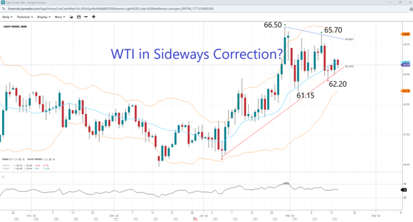 WTI has had a somewhat volatile start to the year, first falling to the $55 per barrel range after the US captured Venezuela's Maduro and then jumping over $65 as Trump's attention turned to Iran. Prices have somewhat stabilised in February as both Tehran and Washington signal they are willing to talk after mass protests in Iran have been quelled. On Monday, WTI rose 1% to $63.51 amid price action while the US was on holiday and ahead of high-stakes talks between the US and Iran on Tuesday. Lower liquidity with the world's largest crude buyer, China, away for holiday this week, could also contribute to higher volatility in the asset. As its representatives were set to sit down in Geneva with US counterparts, Iran initiated military drills in the Strait of Hormuz, which controls around one-fifth of the global crude supply. Meanwhile, US President Donald Trump has continued to talk about his preference for regime change in Tehran.