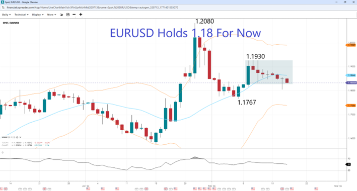 After the strong NFP figures from last week, dovish FOMC officials have pivoted to the components of the CPI, suggesting inflation will continue to fall. Service inflation, in particular, underperformed, as FOMC member Autan Goolsbee noted, saying there could be "several" rate cuts this year. Traders will also be looking at the minutes to better understand how the prospective appointment of Kevin Warsh as Fed Chair will affect the decision-making process and how well Powell's more hawkish tone reflects the board's sentiment. A more dovish read could weaken the dollar and push the EURUSD higher, while an emphasis by FOMC members on sticky inflation could be considered more hawkish and drag the currency pair lower.