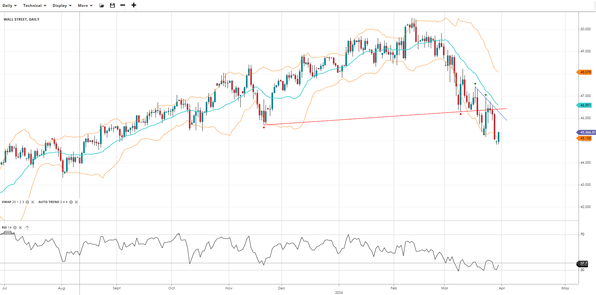 Wall Street Bearish Impulsive 45,367 46,591 45,105 48,078 38