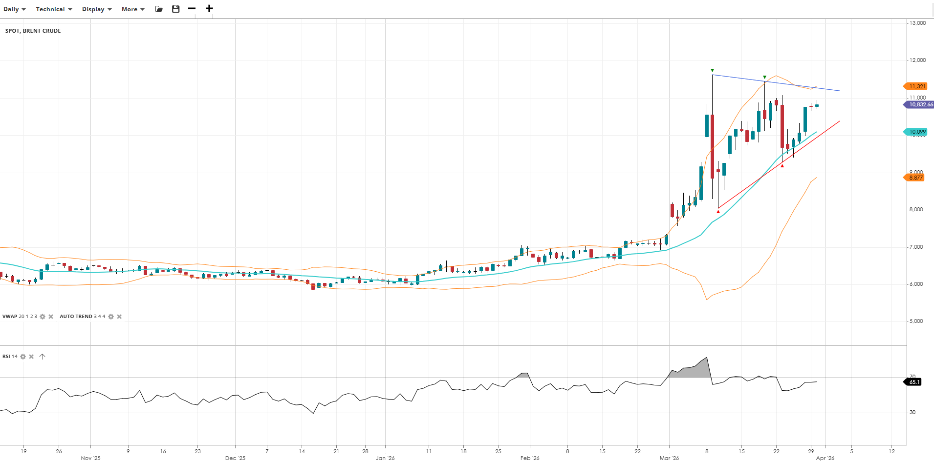 Brent Crude Bullish Pullback 10,833 10,099 8,877 11,321 65