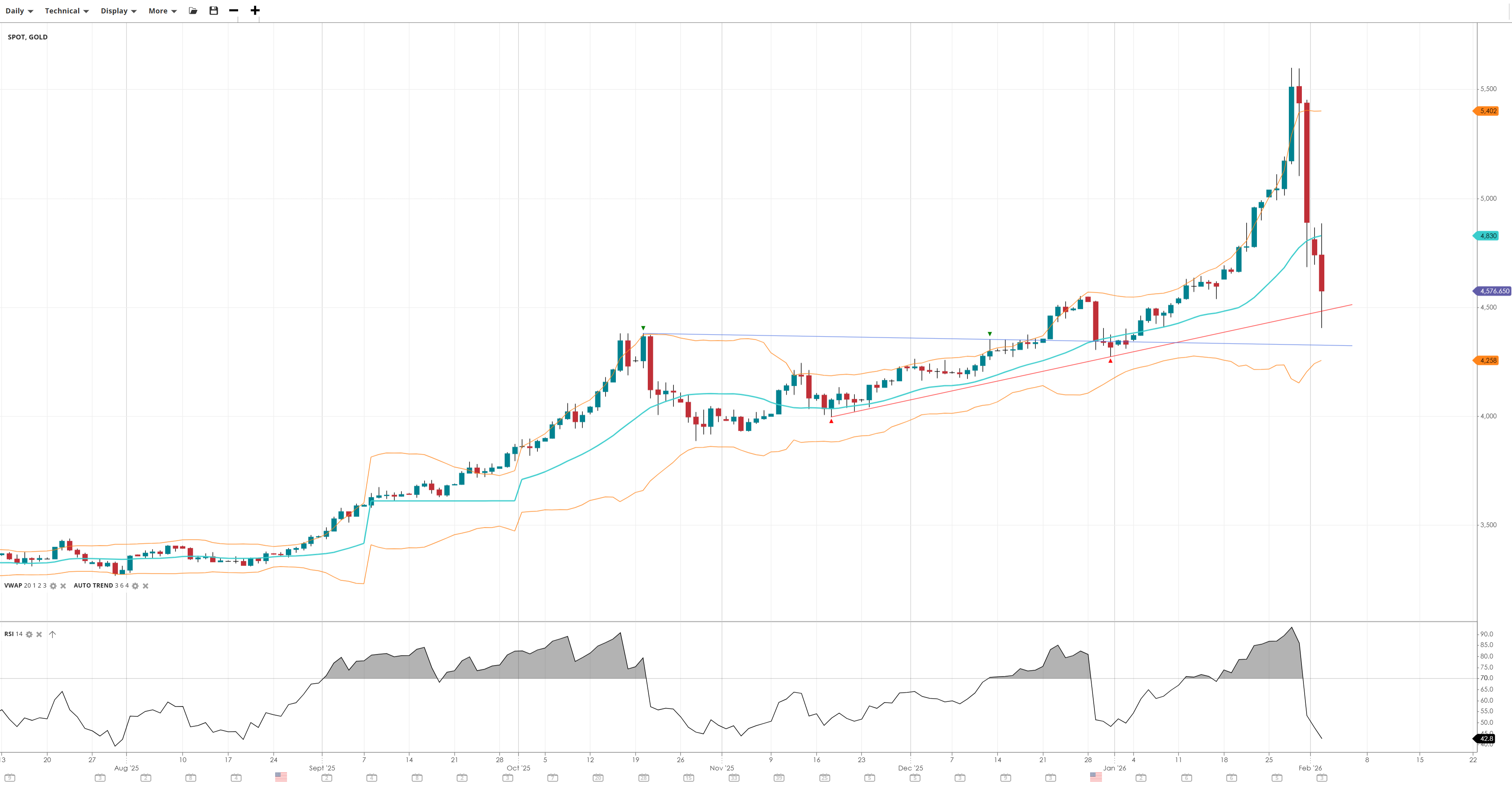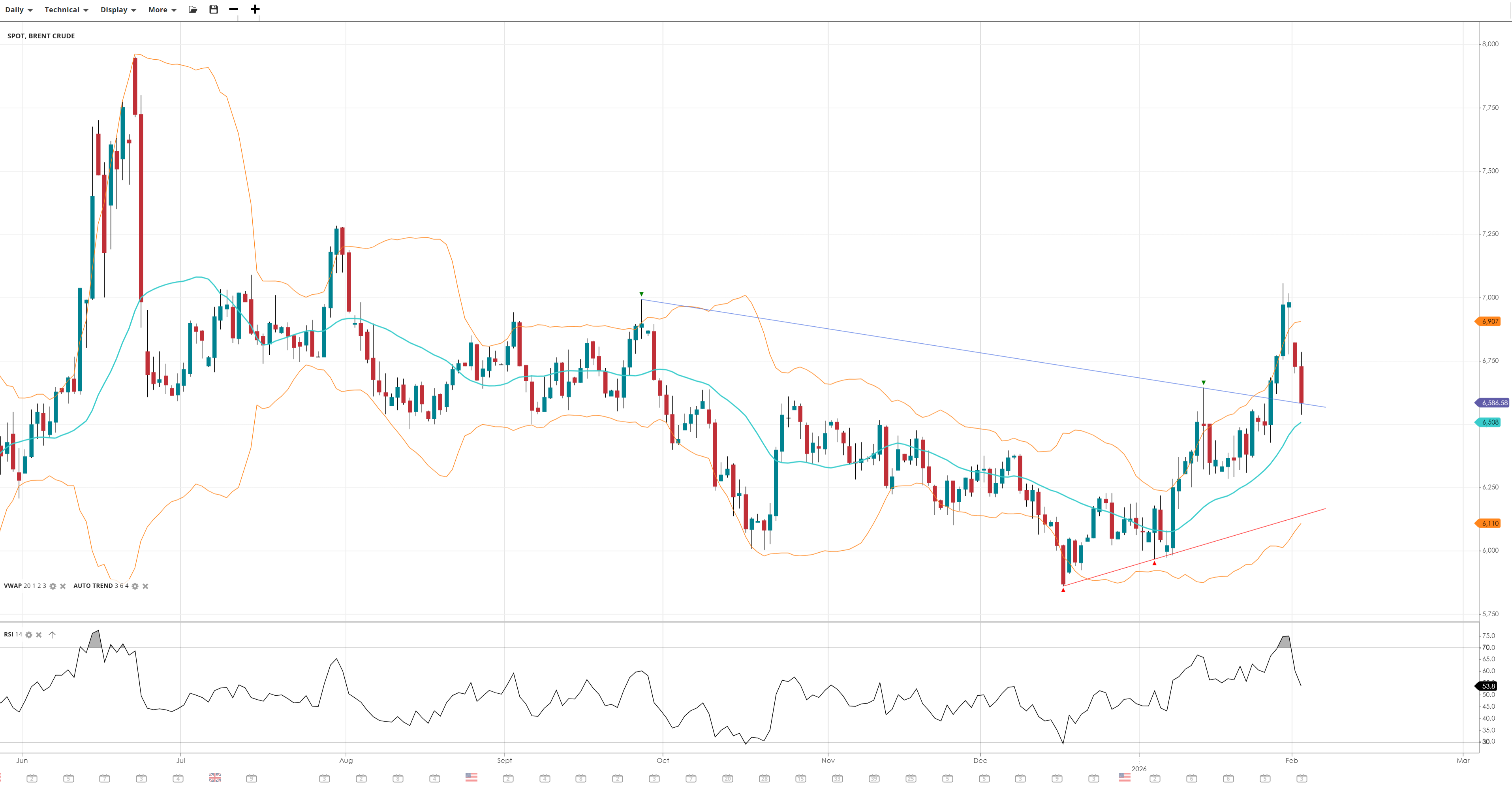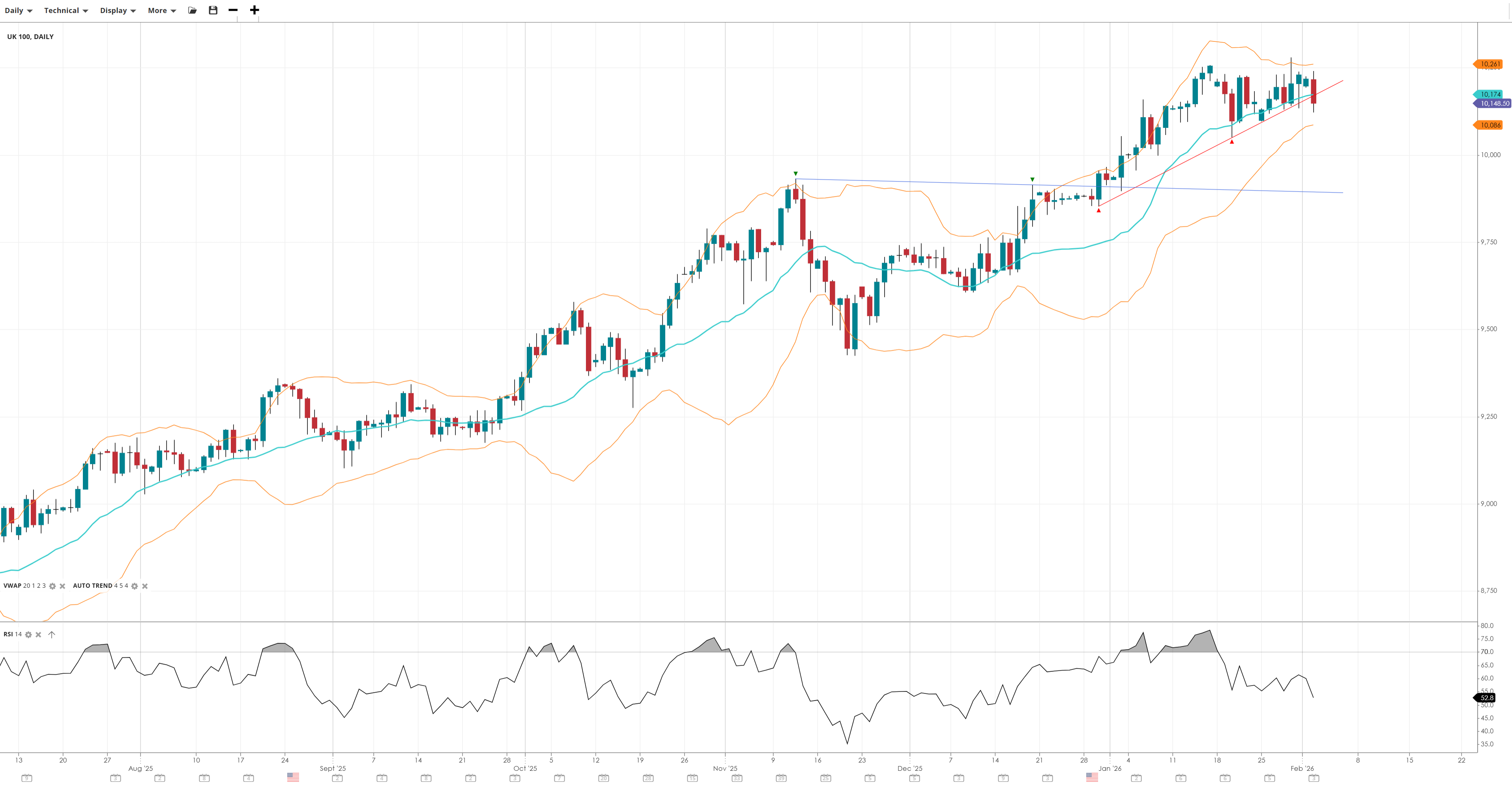 NOTE: These charts use the ‘Pro Trading Tools’ available on the SpreadEx trading platform. To use them, log in to your SpreadEx Financials Account and click ‘Technical’ from the menu on any chart.
