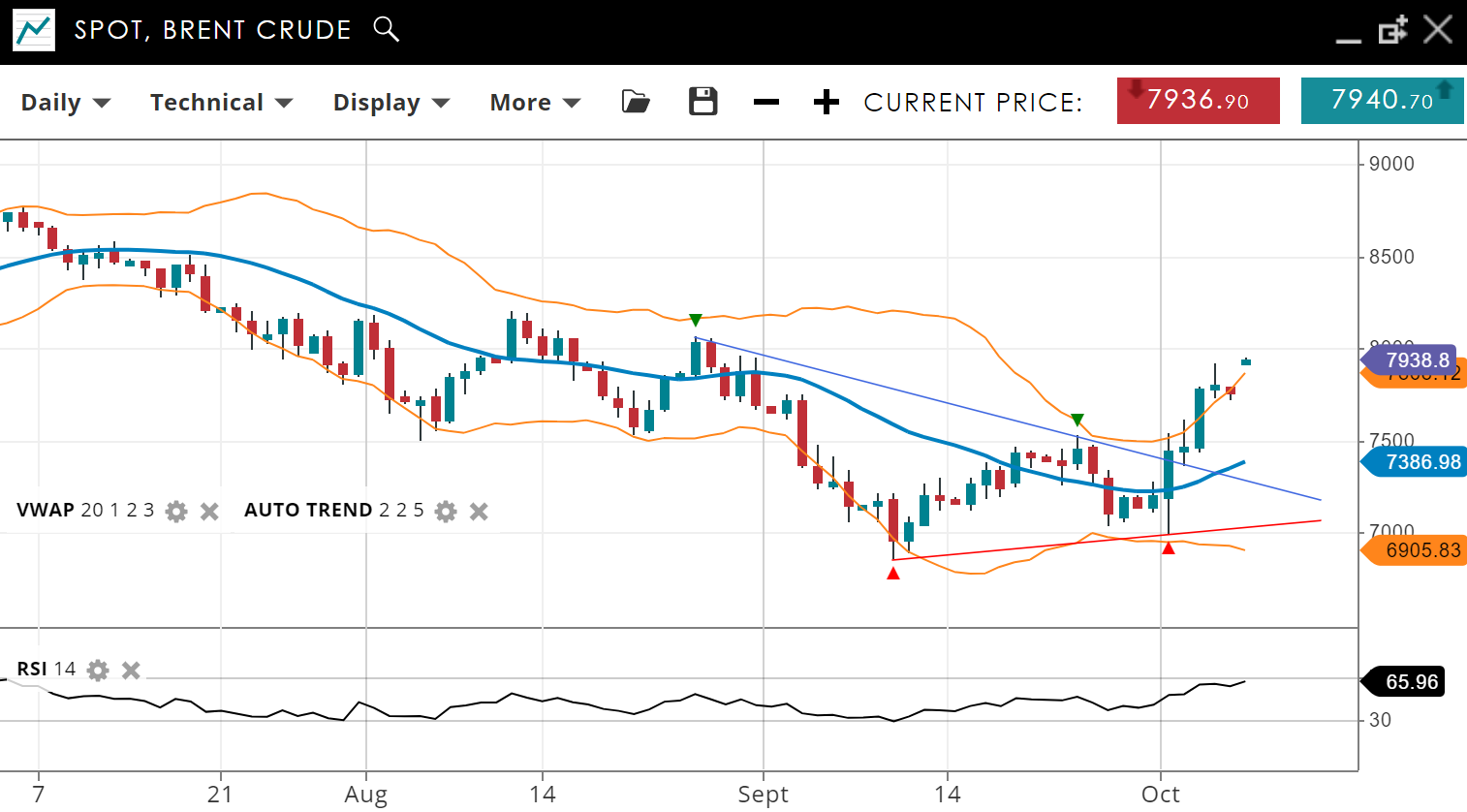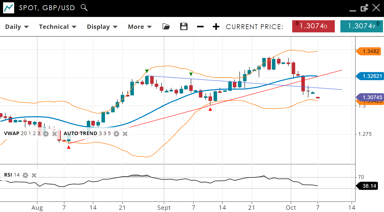NOTE: These charts use the ‘Pro Trading Tools’ available on the SpreadEx trading platform. To use them, log in to your SpreadEx Financials Account and click ‘Technical’ from the menu on any chart.