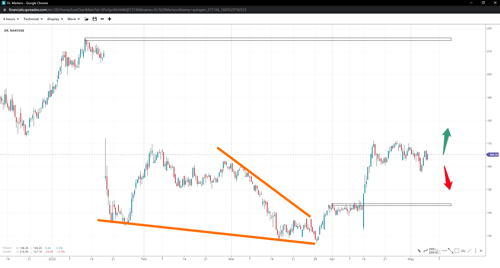 Dr. Martens might have finished a wedge pattern with its third leg down at $127 and has since soared higher. If the trend continues, it may take the stock price as high as the $215 mark should bulls capture the $200 handle. Conversely, if the local support at $160 fails, a deeper correction might develop, possibly inducing a descent toward $145.