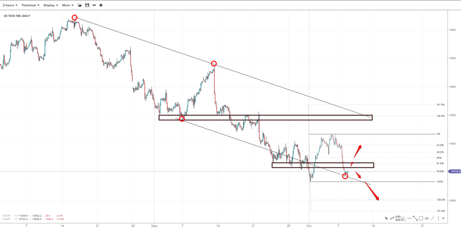 Wall Street found trendline support near 10900 after a rally to 11670. Losing the low of 10830 might expose the 138.2% and 1618% extensions of 10830-11670 at 10500 and 10300. If the channel support holds, 11250 is where sentiment might shift below 11500.