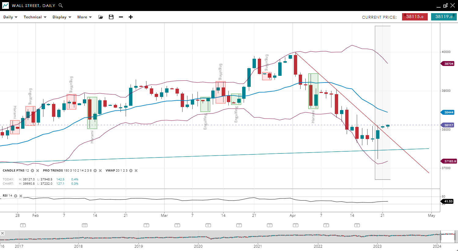 | Wall Street | Bearish | Impulsive | 38,117 | 38,444 | 37,183 | 39,704 | 41 |
