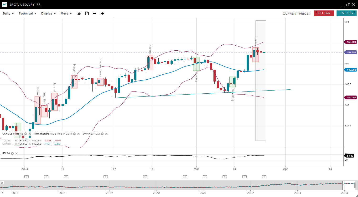 | USD/JPY | Bullish | Impulsive | 151.35 | 149.26 | 145.94 | 152.59 | 64 |