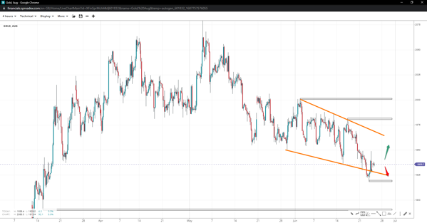 Gold’s price action has printed a wedge down to 1920, and it turned to seek bullish best towards 1980, and the 2k handle provided it reclaims 1950. Losing the local low might accelerate the descent towards 1890 and invalidate the wedge, with a substitute being a downward impulse starting at 1980.