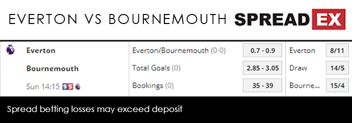 That is, however, far better than how the Toon are faring at the moment. Teetering above the relegation zone, Newcastle have won just 4 games all season, with only 1 victory in their last 8 league fixtures. In other words, they might be in for another miserable weekend, with Spreadex offering a rather conclusive Chelsea/Newcastle Goal Supremacy spread of 1.8-2. Lurking just outside the top 10, Everton and Bournemouth then go head-to-head at 2.15pm on Sunday. The Toffees have hit a real rough patch recently; Boxing Day’s 5-1 win at Burnley aside they’ve looked pretty rubbish, even when factoring in tough fixtures against Liverpool, Man City and Tottenham.