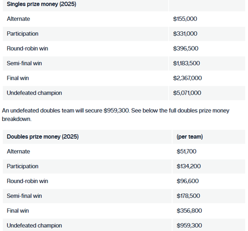 An undefeated champion at the Finals will walk away with an eye-watering record $5,071,000, the richest payout in the event’s history.
