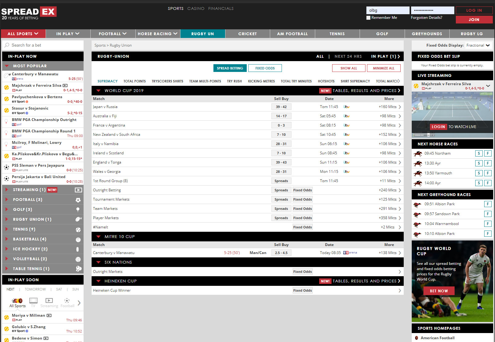 As well as in-play spread betting and fixed odds prices on every match, we also have more than 1000 long-term markets on the Rugby World Cup.